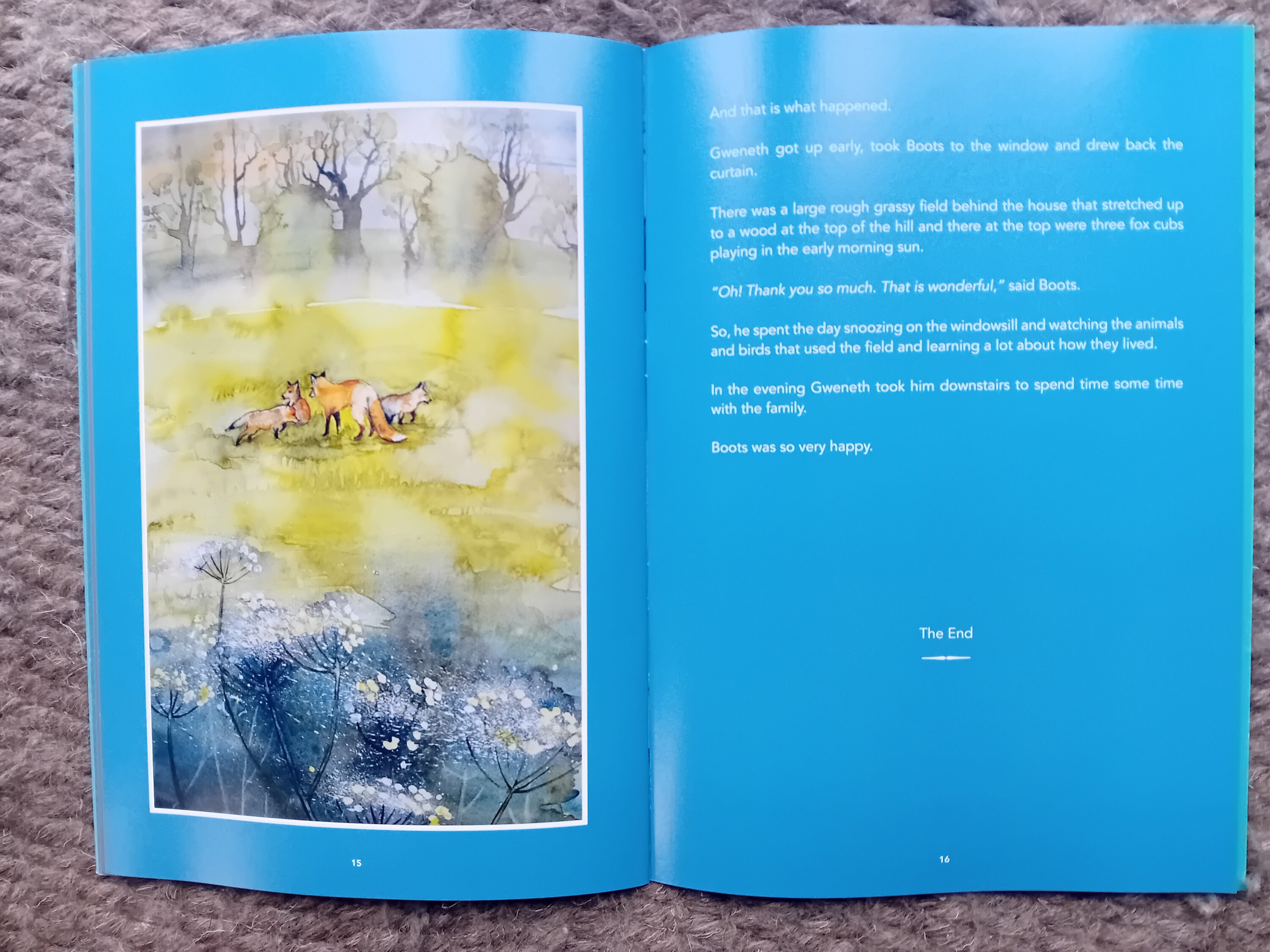 This magical book explores a little girl's desire to find a new friend to share her life and love of nature. It was written by Penny Stevens, who sadly died in the summer of 2023 with Parkinson's Disease and is illustrated by myself. Penny was my mum and it was her wish that 'Boots' could be used to raise money for Parkinson's UK. As a result, £3.00 from the purchase of this book will be passed on to Parkinson's UK.