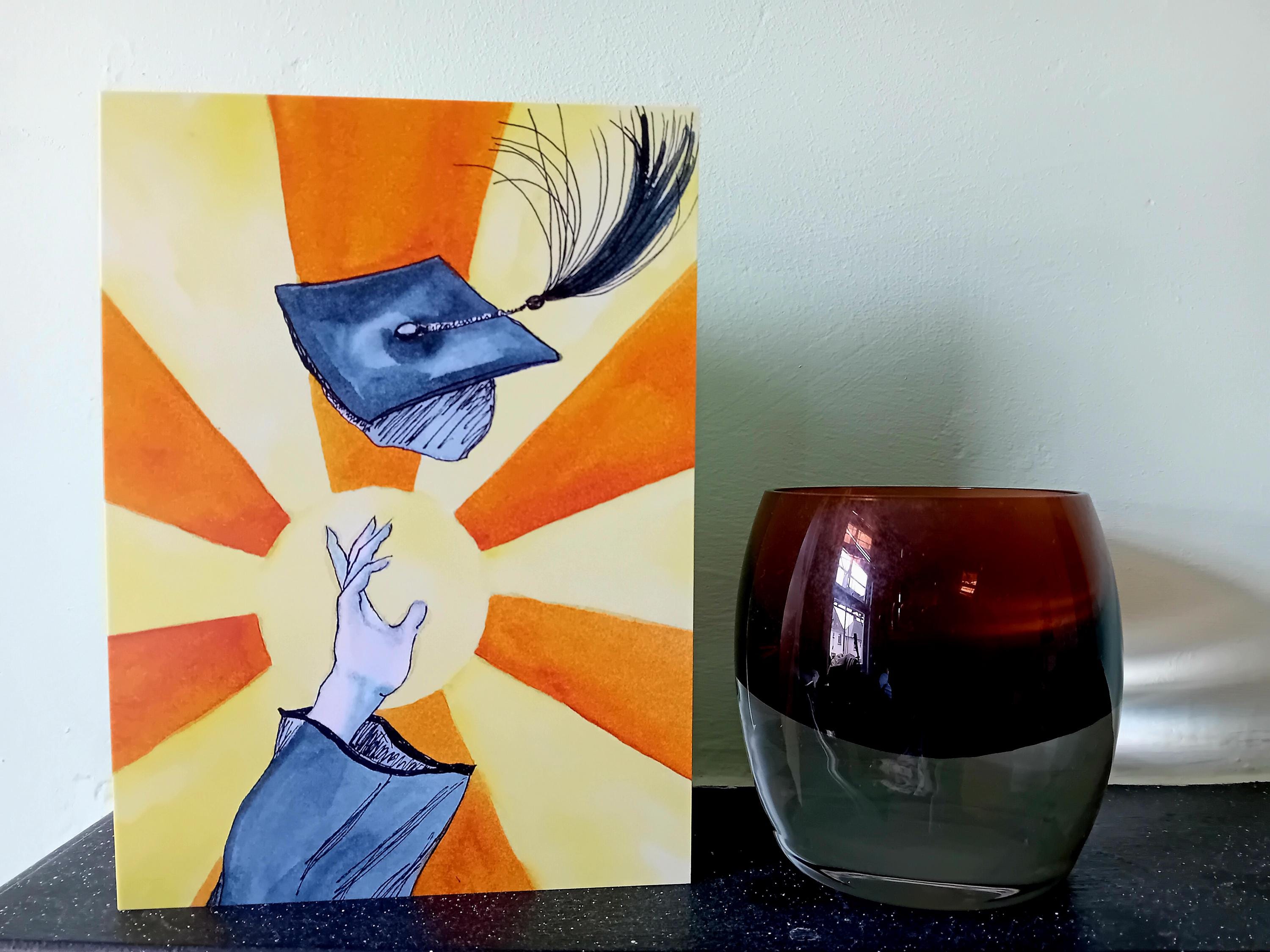 This 'Congratulations!' greetings card is from my watercolour painting of celebrating your degree by tossing your hat up into the air - something every graduate has to do! Perfect for sending your congratulations to anyone special you know who is graduating this year.