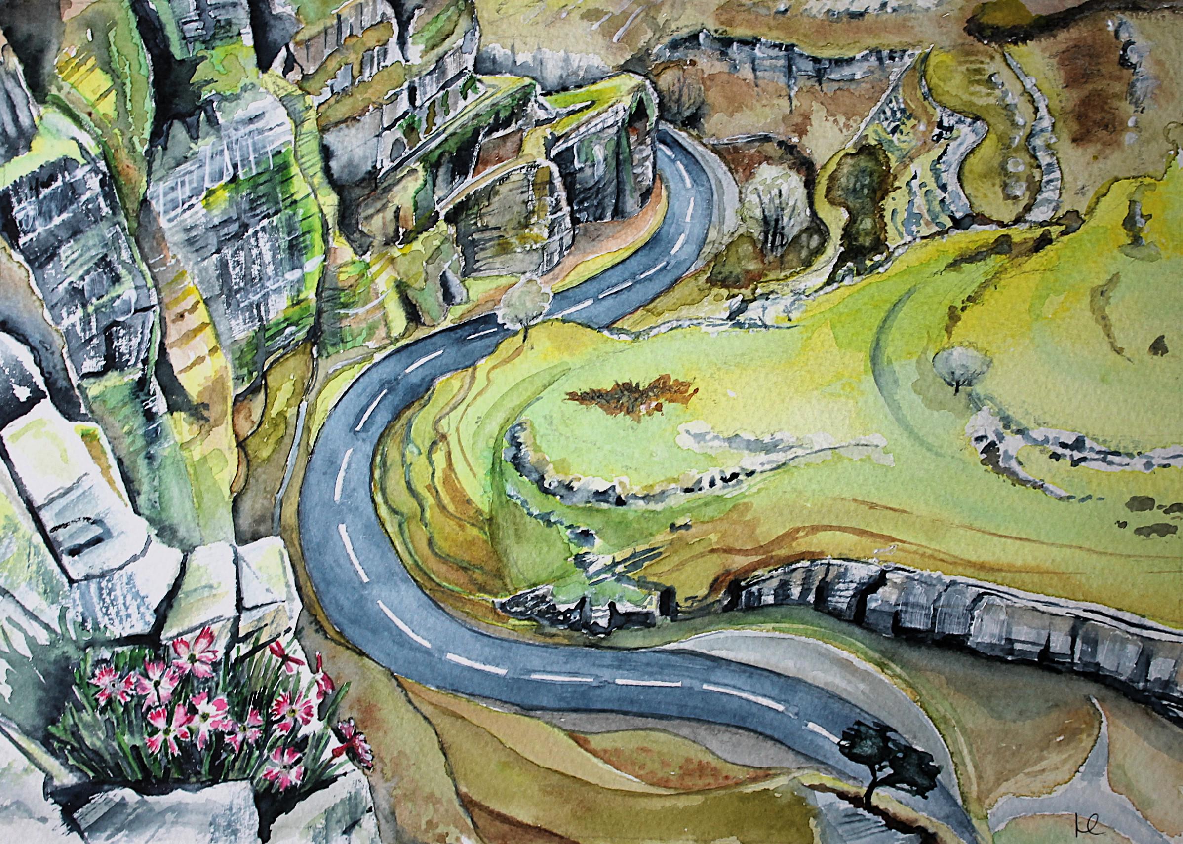 This 'Cheddar Gorge Pinks' greetings card is from my original watercolour painting depicting the rare Cheddar pinks which grow in crevices in the limestone cliffs in the spectacular Cheddar Gorge in Somerset.