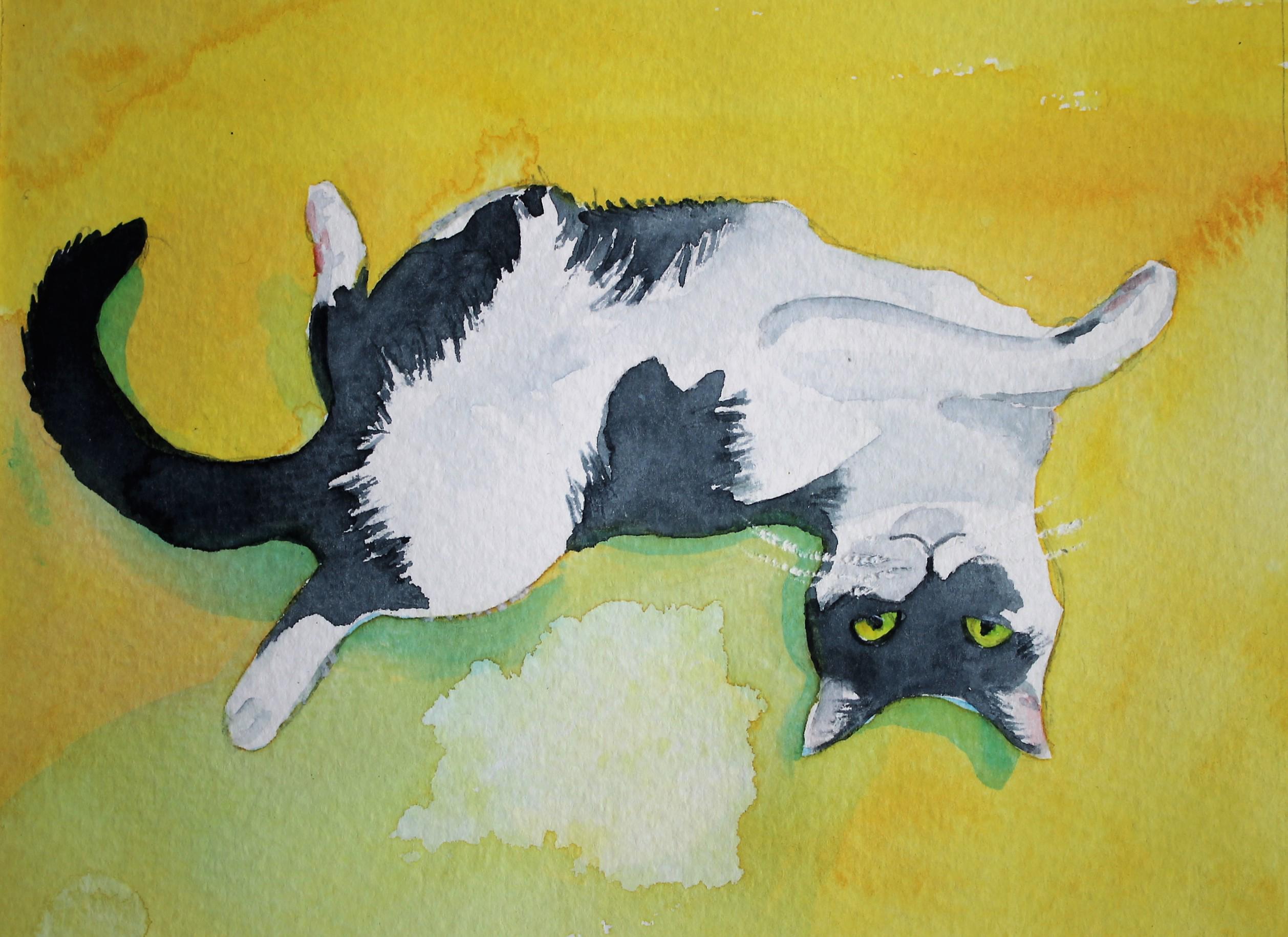 This 'Sunshine Cat' greetings card is from my original watercolour painting depicting a cat enjoying a sunny patch (it's based on my own very lovely cat!).
